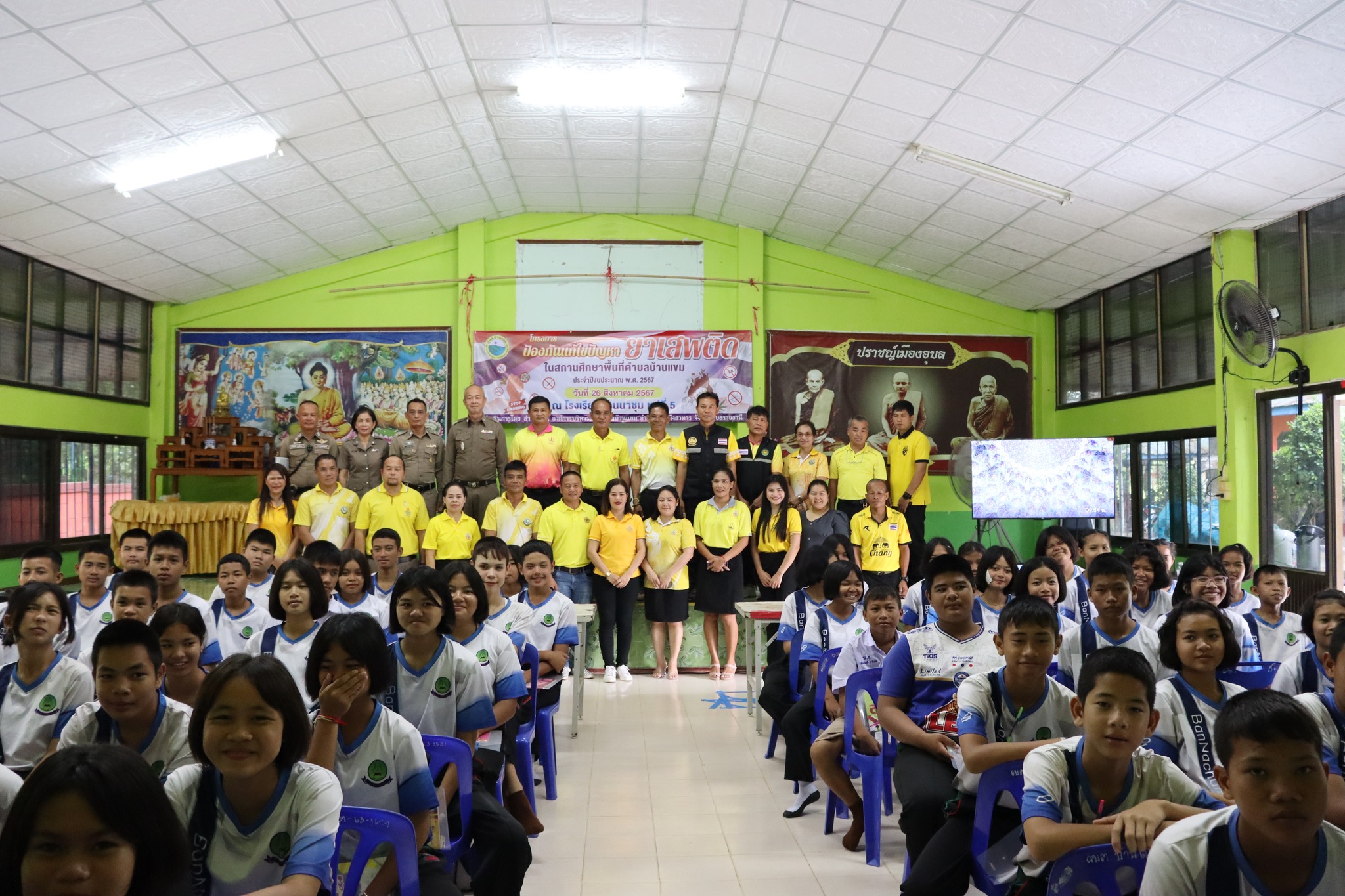 | เมื่อวันที่ 26 สิงหาคม 2567 นำโดยนายศักดิ์ศรี ช่วยลักษณ์ นายกองค์การบริหารส่วนตำบลบ้านแขม นางสาวสุภนิดา ศรีตะเขตต์ ปลัดองค์การบริหารส่วนตำบลบ้านแขม พร้อมด้วยหัวหน้าส่วนราชการ พนักงานส่วนตำบล พนักงานจ้าง องค์การบริหารส่วนตำบลบ้านแขม ได้จัดโครงการป้องกันแก้ไขปัญหายาเสพติดในสถานศึกษาพื้นที่ตำบลบ้านแขม ประจำปีงบประมาณ พ.ศ.2567 ณ โรงเรียนบ้านนาชุม ตำบลบ้านแขม อำเภอพิบูลมังสาหาร จังหวัดอุบลราชธานี โดยมีเจ้าหน้าที่จากสถานีตำรวจภูธรพิบูลมังสาหาร มาเป็นวิทยากรในโครงการดังกล่าว เป็นนักเรียนในระดับชั้นมัธยมศึกษาปีที่1-3 มีนักเรียนเข้าร่วมอบรมจำนวน 71 คน |