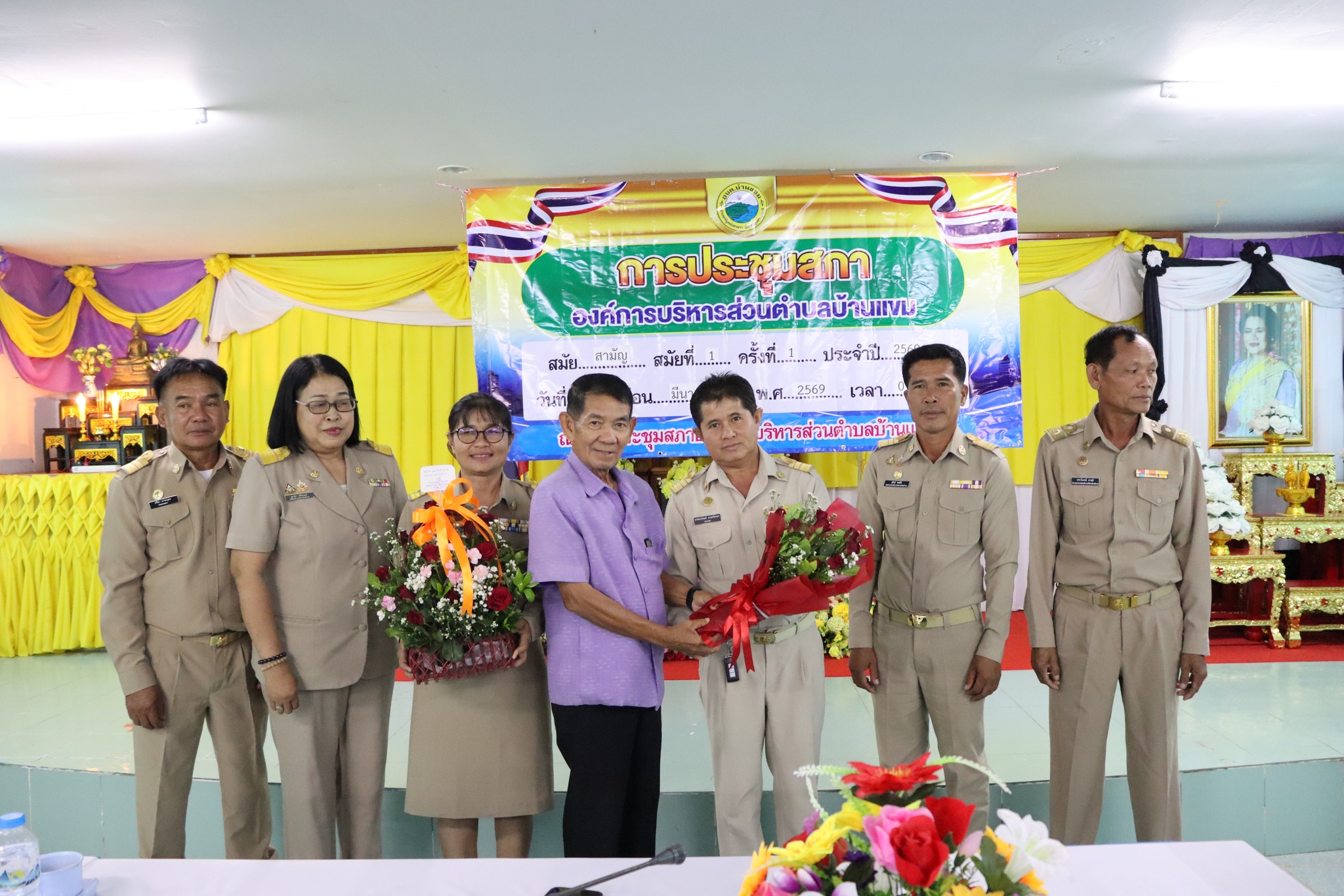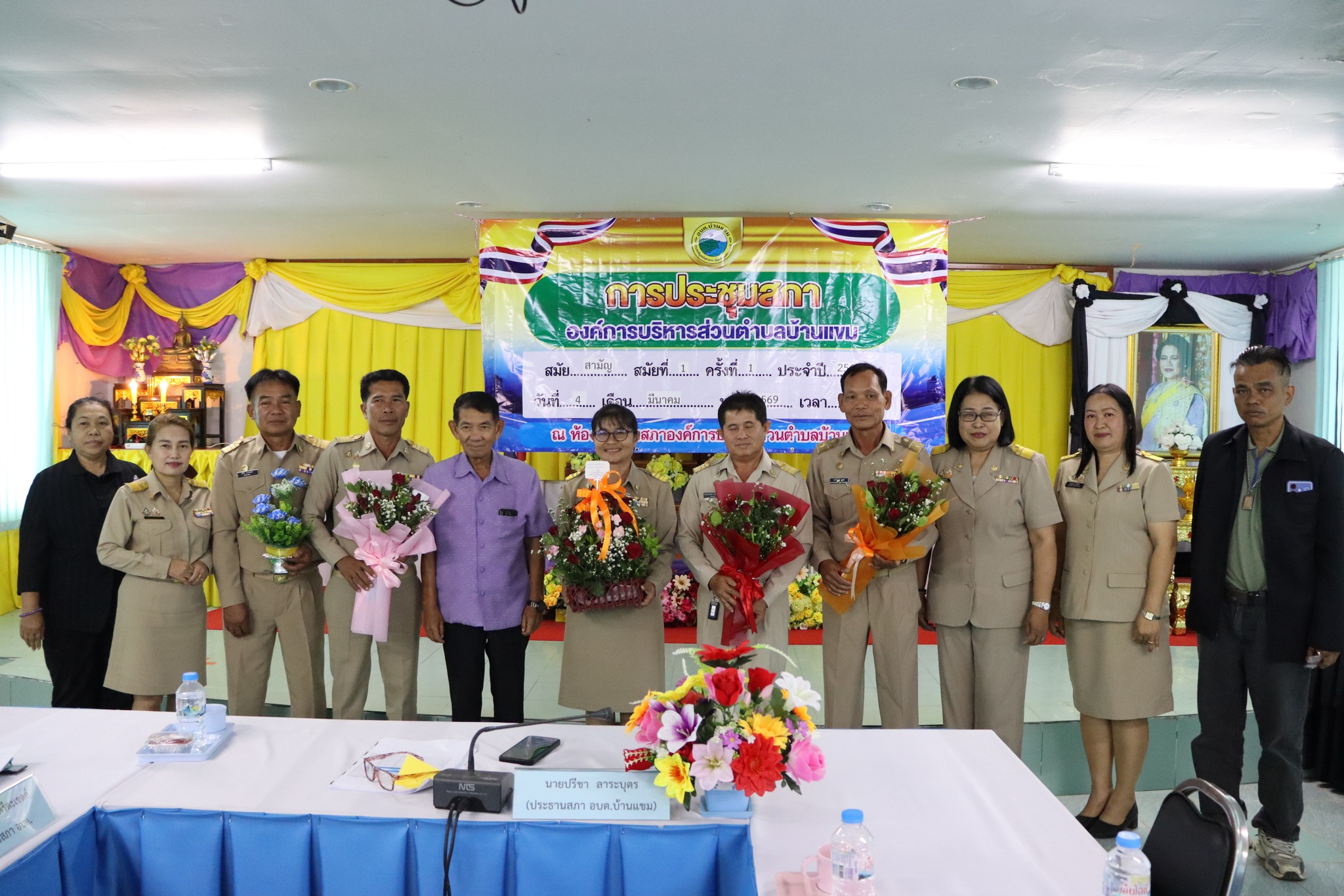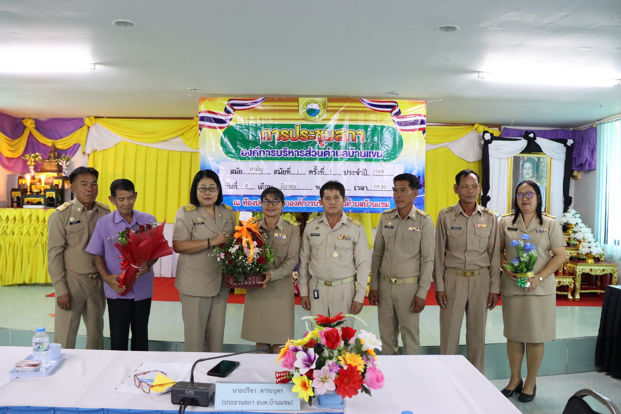 นางสาวชุติกาญจน์ จันทร์ส่อง นายกองค์การบริหารส่วนตำบลบ้านแขมพร้อมด้วยนายธรรมปพณธ์ สายศรีเพชร รองนายกอบต. นายสุวิทย์ พงษ์บัว รองนายกอบต. นายปราโมทย์ สายศรี เลขานุการนายกอบต.บ้านแขม ได้แถลงนโยบายต่อสภาองค์การบริหารส่วนตำบลบ้านแขม ในการประชุมสภาสมัยสามัญ สมัยที่ 1 ประจำปี 2569 ณ ห้องประชุมสภาองค์การบริหารส่วนตำบลบ้านแขม โดยมีนายปรีชา ลาระบุตรประธานสภาอบต.บ้านแขม นายจรัล พุ่มจันทร์ รองประะธานสภาอบต.บ้านแขม นางสาวสุภนิดา ศรีตะเขตต์ เลขานุการสภา และสมาชิกสภา อบต.บ้านแขม