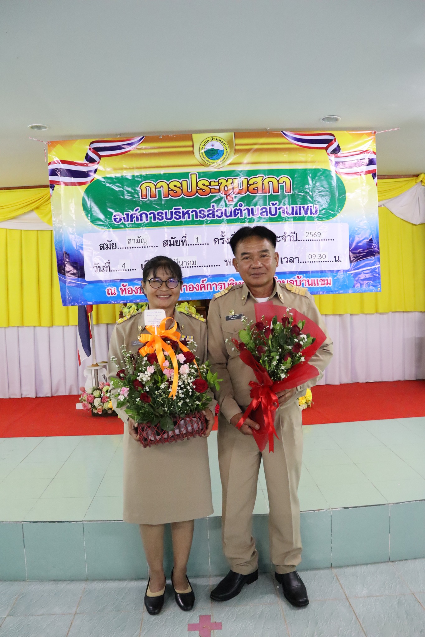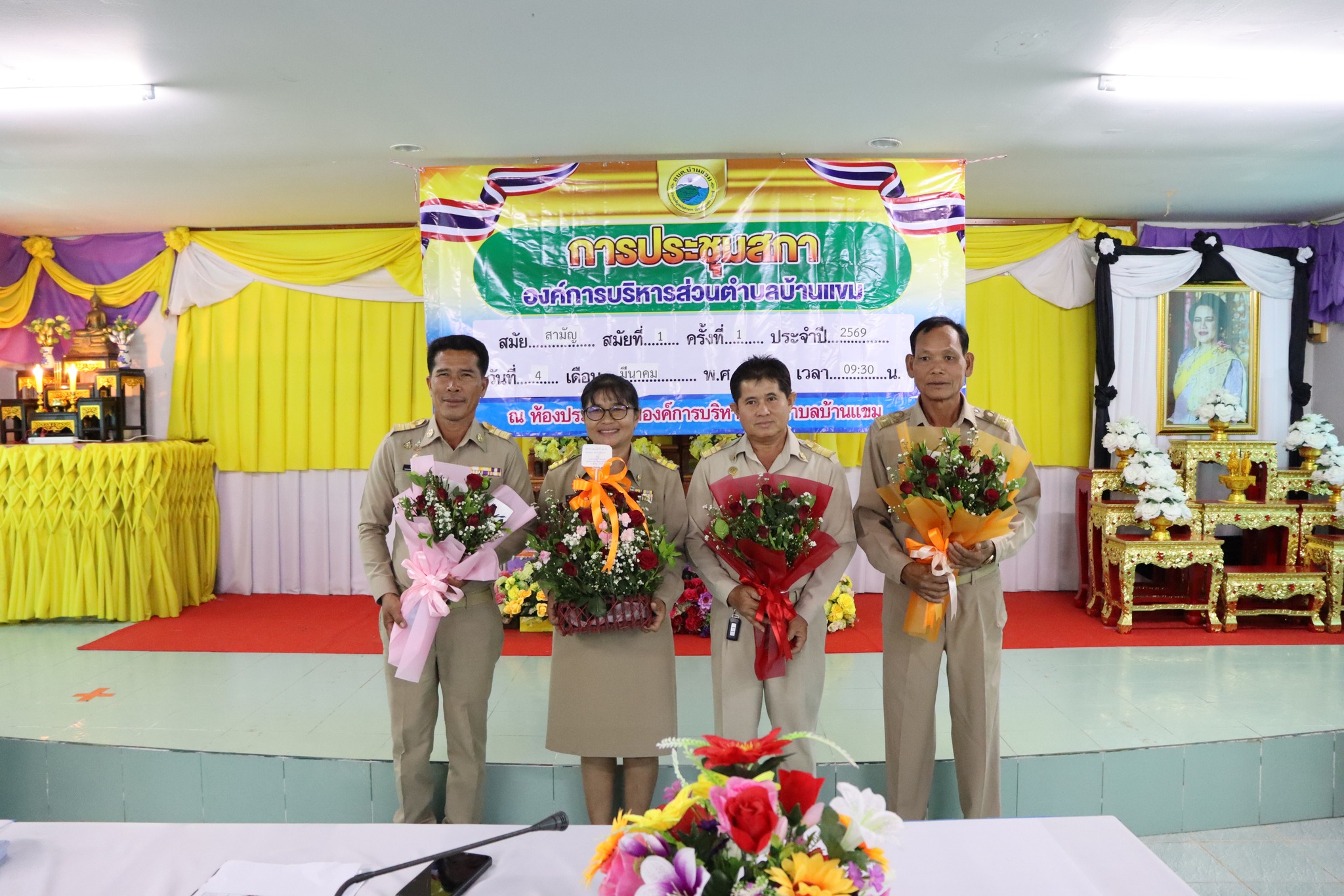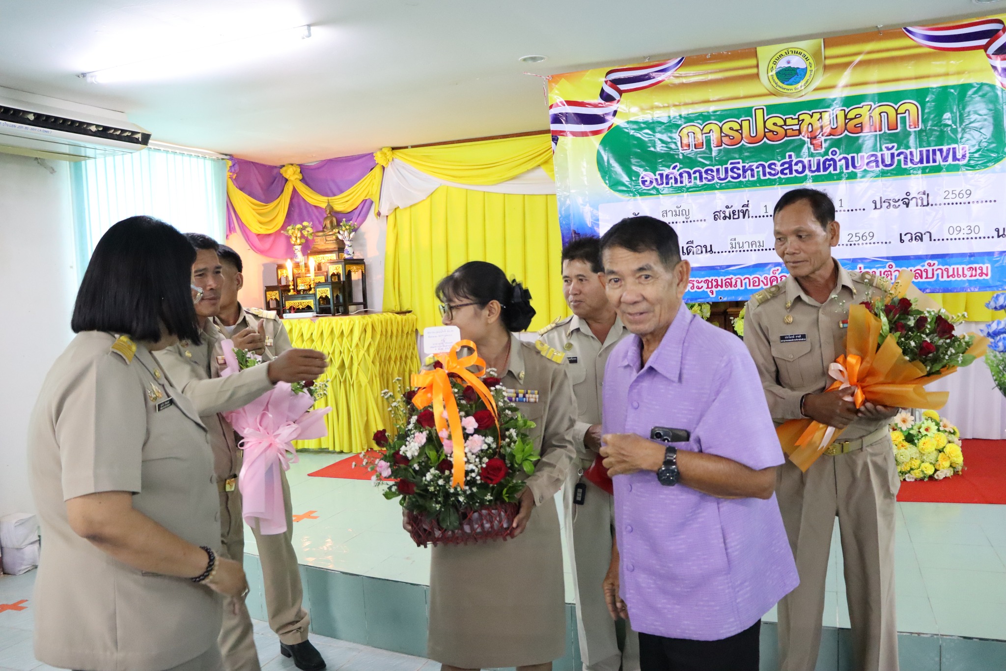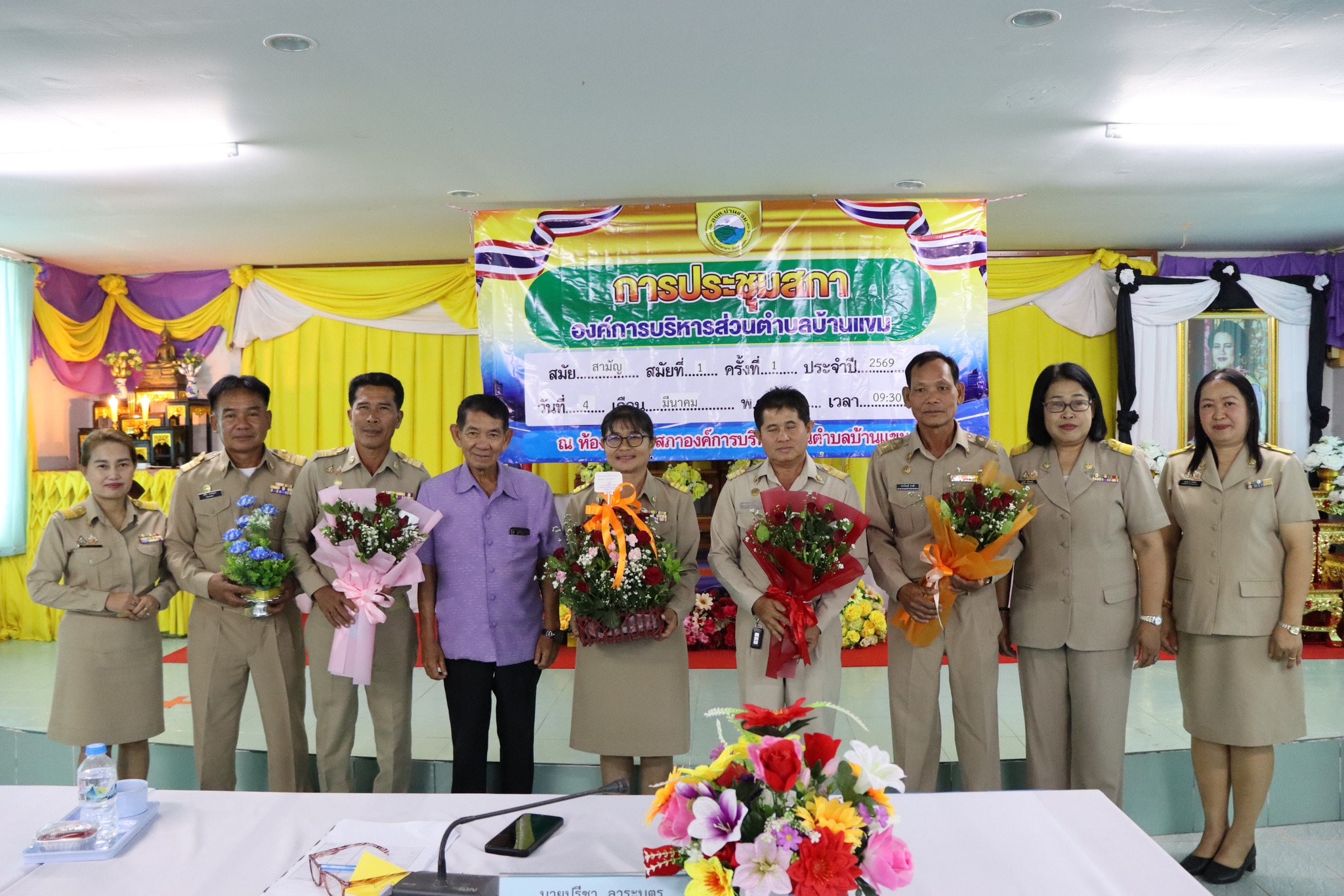 นางสาวชุติกาญจน์ จันทร์ส่อง นายกองค์การบริหารส่วนตำบลบ้านแขมพร้อมด้วยนายธรรมปพณธ์ สายศรีเพชร รองนายกอบต. นายสุวิทย์ พงษ์บัว รองนายกอบต. นายปราโมทย์ สายศรี เลขานุการนายกอบต.บ้านแขม ได้แถลงนโยบายต่อสภาองค์การบริหารส่วนตำบลบ้านแขม ในการประชุมสภาสมัยสามัญ สมัยที่ 1 ประจำปี 2569 ณ ห้องประชุมสภาองค์การบริหารส่วนตำบลบ้านแขม โดยมีนายปรีชา ลาระบุตรประธานสภาอบต.บ้านแขม นายจรัล พุ่มจันทร์ รองประะธานสภาอบต.บ้านแขม นางสาวสุภนิดา ศรีตะเขตต์ เลขานุการสภา และสมาชิกสภา อบต.บ้านแขม