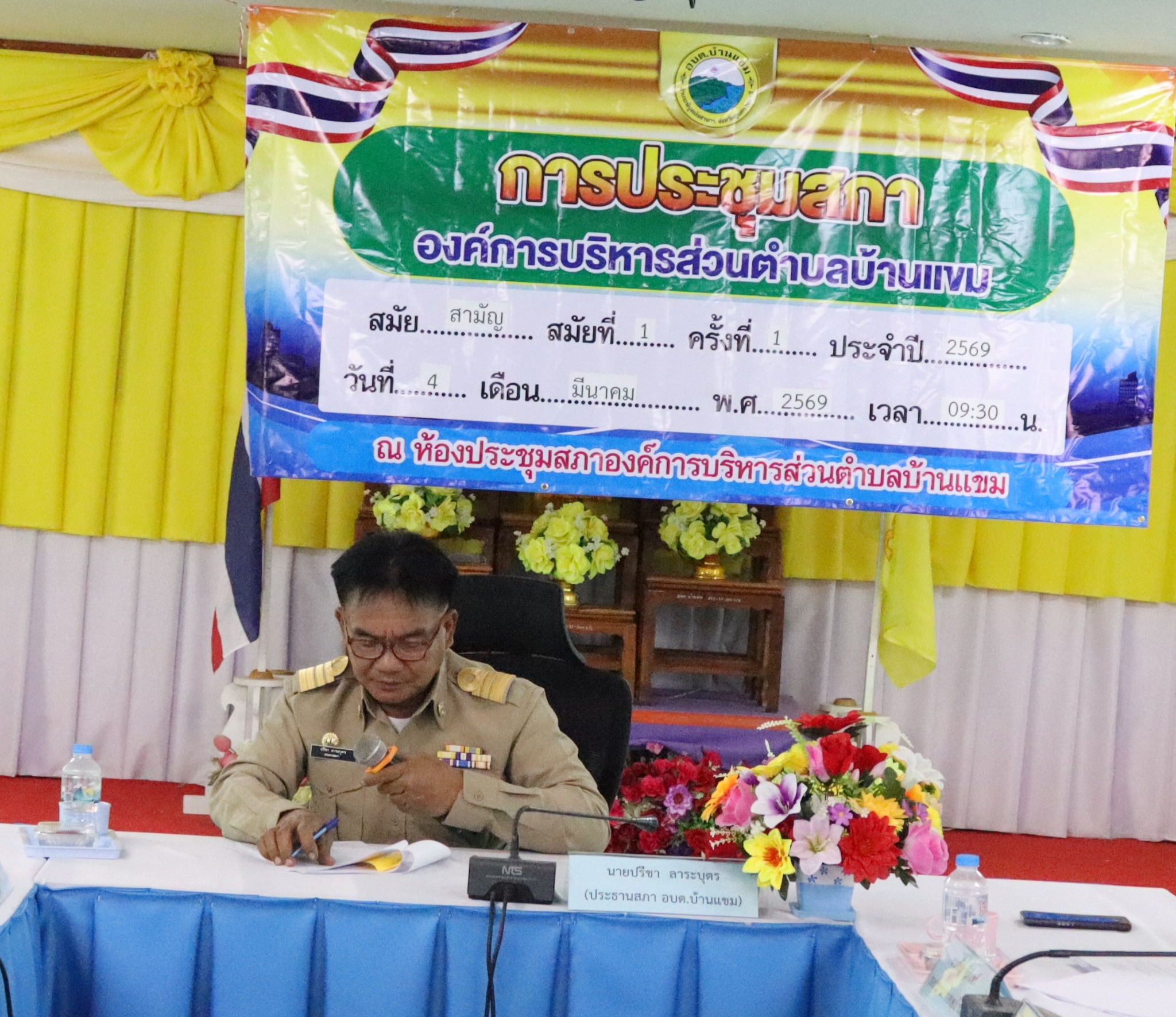 วันพุธ, 04 มีนาคม 2569 13:28วันที่ 4 มีนาคม 2569 เวลา 09.30 น. การประชุมสภาสมัยสามัญ สมัยที่ 1 ครั้งที่ 1 ประจำปี 2569 นางสาวชุติกาญจน์ จันทร์ส่อง นายกองค์การบริหารส่วนตำบลบ้านแขม แถลงนโยบายต่อสภาองค์การบริหารส่วนตำบบ้านแขม ก่อนเข้ารับหน้าที่อย่างเป็นทางการ